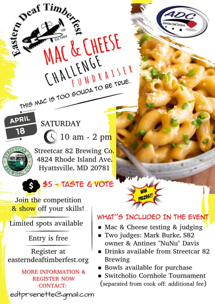 EDT will host fundraising event MAC & Cheese Challenge CookOff competition where chefs show off their skills! We can enjoy the variety of MAC & Cheese and play cornhole or watch the game at Streetcar 82 Brewing Co.