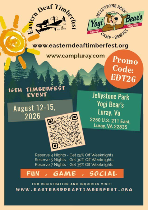 Timberfest Info Timberfest ’26Yogi Bear’sJellystone ParkCamp – ResortLuray, VAAugust 12-15, 2026Coming soon:Registration formSchedule